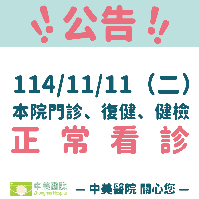 凤凰颱風11/11(二)本院門診、復健、健檢正常看診~