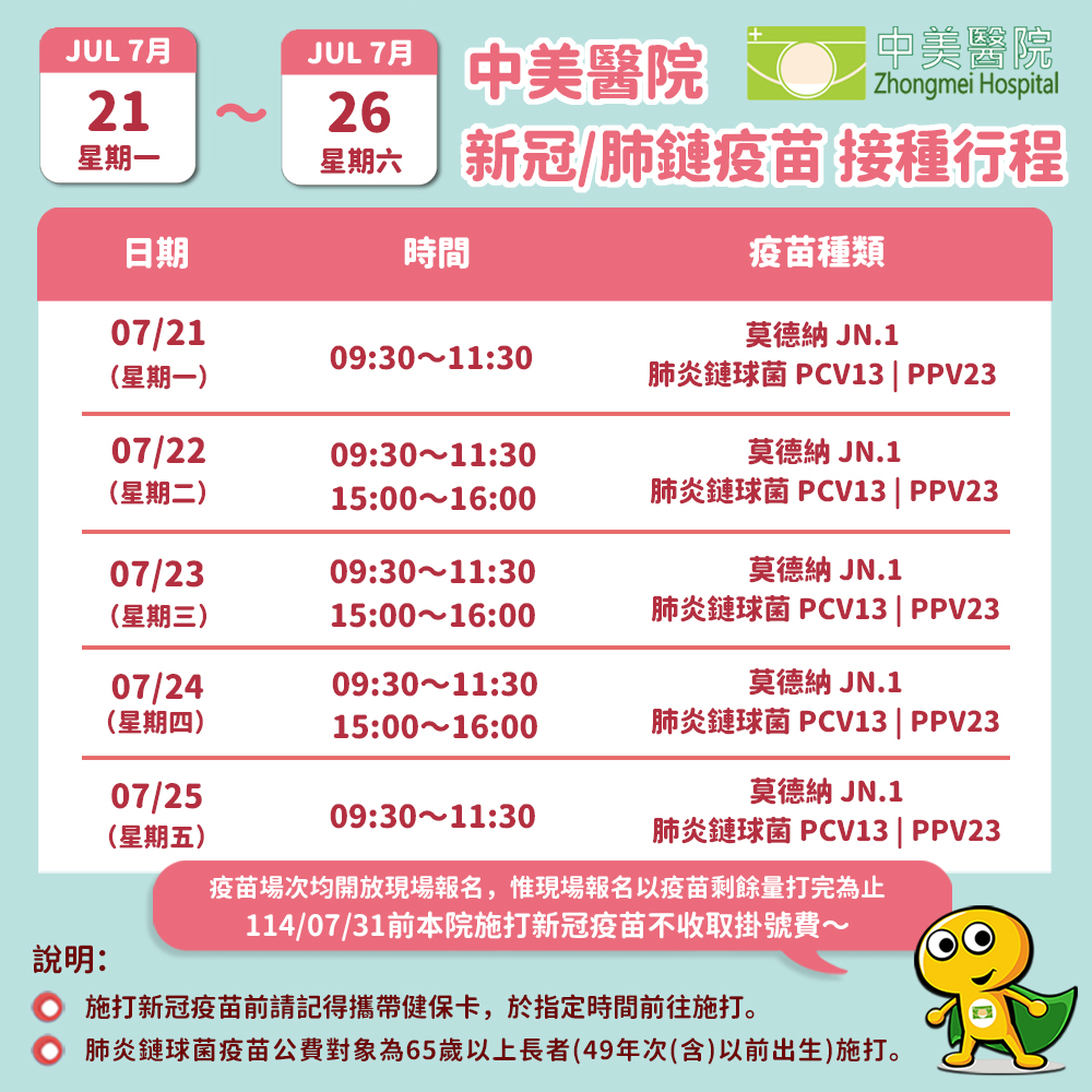 因應疫情升溫,本院新增疫苗專診請參閱~ 肺炎鏈球菌疫苗正式開打嘍,符合公費資格者歡迎前往施打~