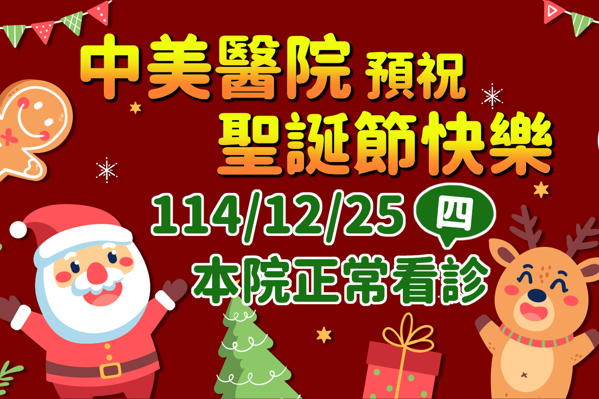 本院於12/25(四)聖誕節正常看診~ 中美醫院 預祝您聖誕節快樂!