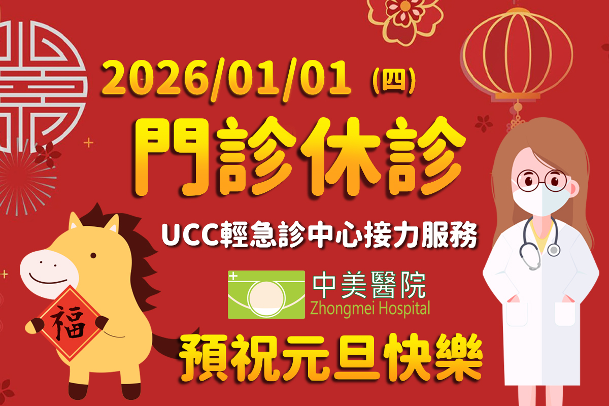 本院於2026/01/01(星期四)門診休診,不便之處敬請見諒~ 預祝大家元旦快樂! 但是!但是!我們的UCC輕急診中心接力服務喔~